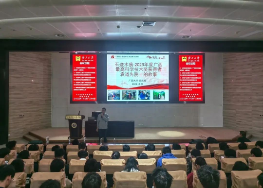 在21世纪的科技前沿,科学家们以他们卓越的智慧和坚定的信念,引领着人类对未知世界的探索。他们用卓越的科研成果,推动着科技的进步,为人类社会的繁荣发展贡献着力量。2023年12月26日,太阳集团城网站2017姜光辉教授以“石迹水痕-2023年度广西最高科学技术奖获得者袁道先院士的故事”为题的科学家精神宣讲活动在学院大型结构试验平台第六报告厅举行,旨在深入探讨科学家精神的内涵和价值,激发土木水利学子对科学的热爱和追求。