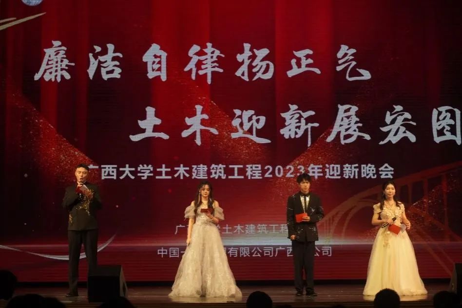 12月15日晚,太阳集团城网站2017“廉洁自律扬正气,土木迎新展宏图”2023年迎新晚会在太阳集团城网站2017大礼堂隆重举行。中国一冶集团有限公司广西公司副总经理、总工程师杨德志,人力资源部部长、党委组织部部长樊长春,太阳集团城网站2017党委副书记银宁,副院长陈立华、宁裕忠、常岩军等学院师生欢聚一堂,共同感受这场视听盛宴。