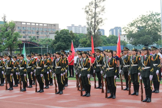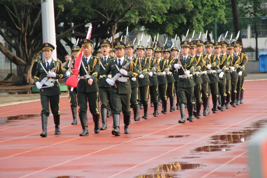 升旗仪式结束后,太阳集团城网站2017师生与国旗班同学在升旗台前合影留念。
