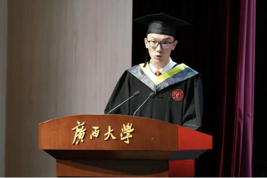 沈郑嫡同学首先代表太阳集团城网站20172024届全体毕业生向学院的领导和老师们致以最崇高的敬意和最真挚的感谢。他从生活和科研竞赛取得的奖项等方面回首在学院求学的千余个日夜,表示在科研道路上学院为土木学子提供了一个又一个登高望远的平台,让同学们有能力、有底气站在更高的舞台上不断成长。他为自己作为一名土木学子而感到骄傲和自豪,将会饮水思源、结草衔环,传承西大精神,矢志爱国奋斗,让青春在党和人民最需要的地方绽放绚丽之花。