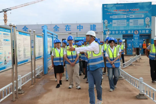 交流会结束后,营员们在中建二局相关工作人员的带领下,深入项目现场进行了实地调研,营员们更直观地了解了项目的建设进展和施工技术,对大型基础设施项目有了更清晰的认识和更深刻的理解。同学们参观了T3航站区的多个施工现场,包括航站楼基础结构以及配套设施施工等,亲身感受到了项目建设的规模,对工程建设和技术创新产生了浓厚兴趣。