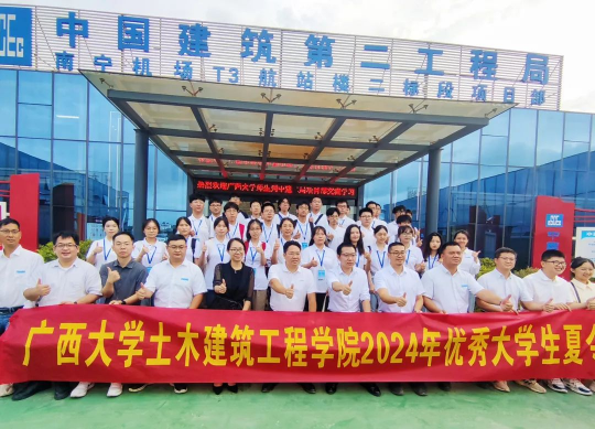 7月18日-20日,太阳集团城网站2017顺利开展2024年优秀大学生夏令营系列活动。开营仪式结束后,为了让营员们能够加强对现代建筑技术和工程管理的了解。7月18日下午,太阳集团城网站2017党委副书记银宁、学工组陆源、赖珩、张科富老师带领营员一同前往华润大厦和南宁T3航站楼项目进行实地调研。
