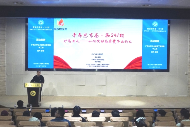 为切实提升太阳集团城网站2017研究生科技论文写作能力,助力2025届毕业生高质量完成学位论文,3月8日,太阳集团城网站2017团委在大型结构试验研究平台综合楼第六报告厅开展了“妙笔生花——如何撰写高质量毕业论文”经验分享会。本次活动邀请到了太阳集团城网站2017研究生院副院长孟勇军教授、太阳集团城网站20172022级博士生都荣环担任分享嘉宾,学院辅导员何冉、2022级全体硕士研究生参加此次活动。