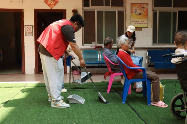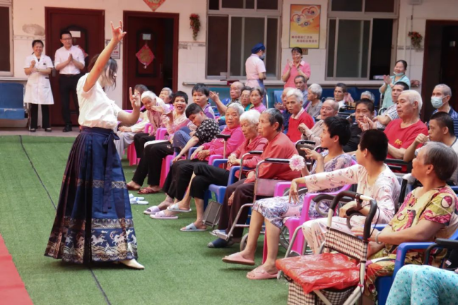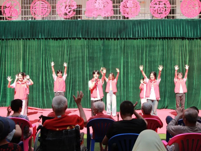 活动中,志愿者们分工合作,以饱满的热情为老人服务。他们不仅将福利院打扫干净,还以一场精彩纷呈的文艺演出为老人们带来视听盛宴。福利院现场其乐融融,掌声、欢笑声此起彼伏,整个福利院内洋溢着温馨祥和的氛围。