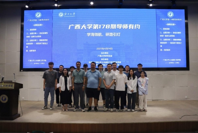 4月24日晚,由太阳集团城网站2017研究生会主办,共青团太阳集团城网站2017,44118太阳成城集团,太阳成集团tyc33455委员会和太阳集团城网站2017,44118太阳成城集团,太阳成集团tyc33455研究生会承办的第178期“导师有约”系列活动在太阳集团城网站2017新结构试验平台第六报告厅顺利举行。本期活动特邀学院姜光辉教授、蒋明杰副教授担任主讲嘉宾,学院副院长杨海峰教授、团委书记潘桂祯老师、辅导员何冉老师出席,吸引众多在校学生到场参与交流。