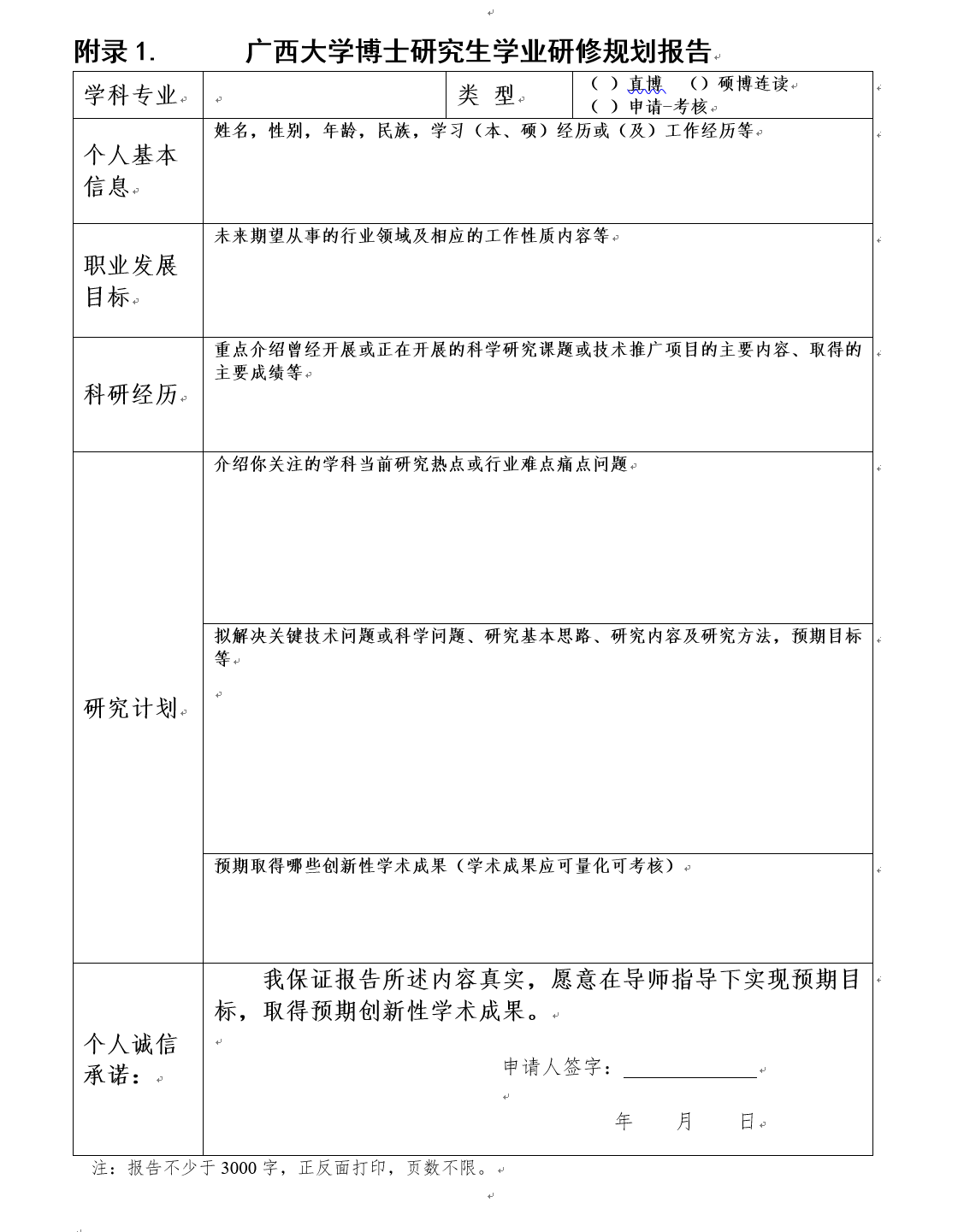 1、参加综合考核考生需于复试前提交1份本人签字的《学业研修规划报告》(简称《报告》,模板见附录1)。《报告》内容应体现个人对博士研究生阶段学习的目标,课题研究的思考和准备,完成博士研究生阶段学习预期取得的学术成就等内容。《报告》扫描件请于复试前提交给太阳集团城网站2017研究生办公室招生负责老师或发送学院招生邮箱tmyb6464@163.com。