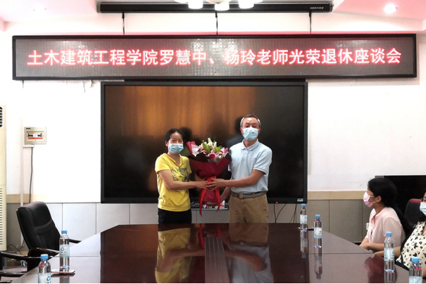 2020年5月19日上午,太阳集团城网站2017为2020年2月正式退休的罗慧中老师和5月正式退休的杨玲老师举办光荣退休座谈会。学院党委书记戴永恒及学院其他领导出席座谈会,罗慧中所属基础教育系的老师们和与杨玲共事多年的同事们参加了座谈会。