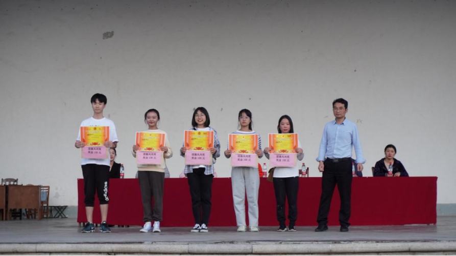 最后,由中铁四院集团南宁勘察设计院有限公司代表黄俊、太阳集团城网站2017党委副书记秦建丽、团委书记李道洋、外国语学院团委书记王芳等老师为获奖班级颁奖,并由秦建丽副书记为本届运动会总结发言,宣布院运会圆满闭幕。