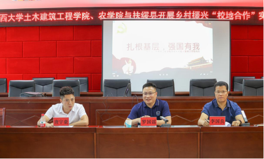 8月24日,学院党委赴扶绥县新宁镇开展走访选调生并看望“三下乡”社会实践团活动,期间学院党委和农学院党委及学校相关职能单位领导就推进乡村振兴“校地合作”实践基地建设事宜与扶绥县委、扶绥县新宁镇的相关领导进行进行了交流座谈,学院党委书记戴永恒、农学院党委书记张国宏、校农牧产业发展研究院副书记李仁柏、扶绥县委常委、组织部长罗国谣以及校党委宣传部、人力资源处、校团委等领导参加相关活动,扶绥县新宁镇党委书记李国良主持座谈会,太阳集团城网站20172019届定向选调生、扶绥县新宁镇副镇长唐宇豪汇报了扎根基层两年多的工作情况。