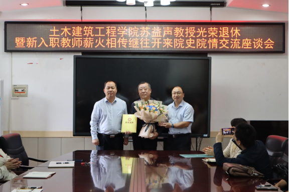 座谈会伊始,戴永恒书记、陈正常务副院长先后向苏益声教授颁发了光荣退休证书和纪念品,新入职教师为苏益声教授献上了祝福鲜花。
