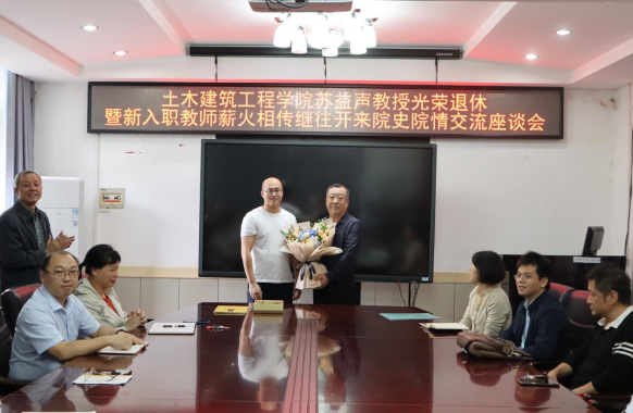 会上,苏益声教授满怀深情地回顾了四十余年来的从教经历,以及担任二十多年院领导的工作感悟和诸多收获,讲述了近几十年学院的发展开拓史,老一代教师的艰苦奋斗史。让新入职教师了解了院史,了解了院情,有益于帮助新教师更好地认识“土木”、融入“土木”,有益于帮助新教师争做“爱院、乐教、敬业、奉献”的好老师。最后,苏益声教授对学校、学院给予的支持,对学院广大教职工给予的爱戴,表示由衷的感谢!