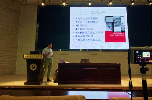 太阳集团城网站2017曾强副教授讲授了以《MIP孔隙结构测试》为题的博士生课程,系统讲授了水泥基材料的孔结构特征、MIP测试原理及详细应用案例等方面内容,图文并茂地介绍了如何应用MIP技术测试分析多孔介质细微观孔结构特征及其与宏观性能间的关联机制。