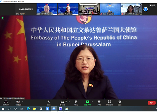11月10日,在中国外交部、文莱达鲁萨兰国财政与经济部、广西壮族自治区外事办公室、中华人民共和国驻文莱达鲁萨兰国大使馆的支持下,由我校、文莱理工大学和中国—东盟区域发展省部共建协同创新中心共同主办,中国—东盟研究院及文莱理工大学规划发展办公室共同承办的“中国—文莱战略合作伙伴关系建设—以产业与教育互动为视角”论坛在我校召开,本次论坛以线上线下相结合的方式举行。