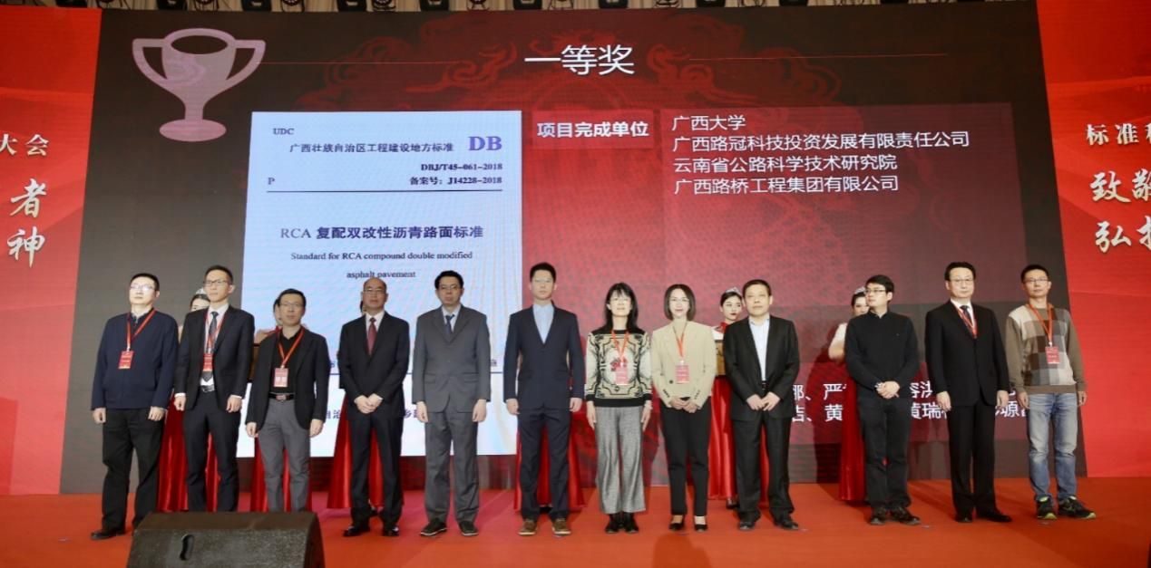 12月13日,2021年度“标准科技创新奖”颁奖仪式在济南举行,由我校太阳集团城网站2017孟勇军老师牵头编制的广西地方标准《RCA复配双改性沥青路面标准》获“标准科技创新奖”项目奖一等奖,这是继去年杨绿峰教授获得一等奖之后,我校再次获得该项目的一等奖,再次实现了广西工程建设标准化领域该奖项的突破。