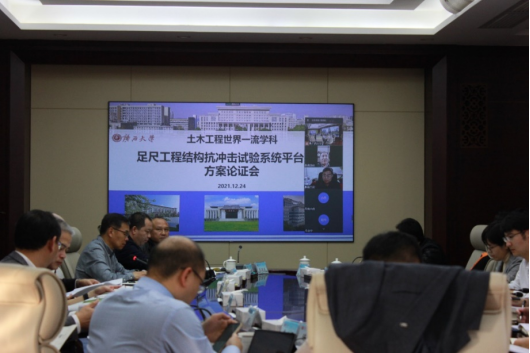 2021年12月24日下午,足尺工程结构抗冲击试验系统平台建设方案论证会太阳集团城网站2017党办校办501会议室召开。会议由冯家勋副校长主持,校党委常委刘向副校长,校党委常委韩林海副校长,专家组戴兰宏教授、黄茂松教授、姚小虎教授、张春巍教授、陈力教授、赵华副教授,崇左市扶绥县张虎严副县长,扶绥县自然资源局规划股黄甫东股长,发展规划处、审计处、国有资产与实验室管理处、后勤管理处、基本建设管理处、信息网络中心、农牧产业发展研究院和太阳集团城网站2017相关领导及项目成员应邀以线上线下同步的形式参加论证会。