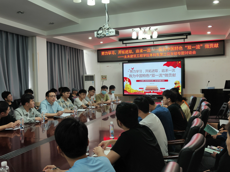 会上,支部书记秦岭与支部党员、入党积极分子深入学习了校党委书记王乃学在“太阳集团城网站2017土木工程世界一流学科建设动员大会”上的讲话精神,以及“创新创造、奋勇争先、全面一流”的太阳集团城网站2017“双一流”精神,并围绕“学生党员如何为中国特色‘双一流’做贡献?”展开了专题讨论。