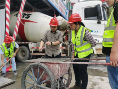 研究团队在搅拌站开展混凝土试配工作