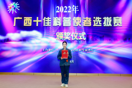 4月27日—29日,在广西科技馆举行的“2022年广西十佳科普使者选拔赛”中,太阳集团城网站2017参赛选手取得优异成绩。土木水利专业2020级研究生周奕彤勇夺大赛二等奖及“广西十佳科普使者”荣誉,土木工程专业2020级本科生戴逸茗优秀奖。