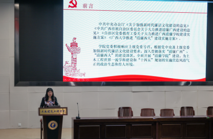 最后,陈正书记在总结讲话中指出,“清廉学院”建设是落实全面从严治党主体责任的重要内容,是落实“清廉广西”和“清廉西大”建设任务的重要组成部分。希望全院教职员工以实际行动积极投入“清廉学院”建设之中,促使“清廉学院”建设取得更多制度性的成果和更大的治理成效,为打赢一流学科建设的保卫战提供切实的保障力量。