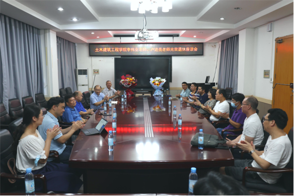 7月13日上午,学院在土木楼三楼会议室为2022年7月正式退休的李伟业、卢进亮两位老师举办了光荣退休座谈会。学院党委书记陈正,副院长陈立华、宁裕忠,以及与李伟业、卢进亮两位老师共事多年的老师们参加座谈会。