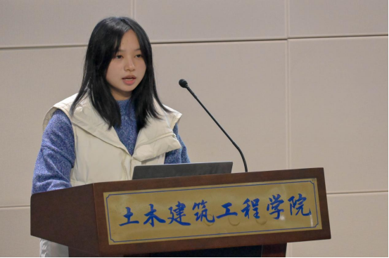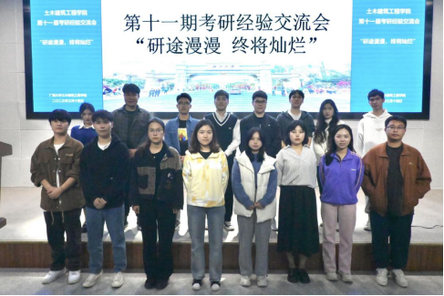 经验分享环节,6位研究生代表结合自身考研经历,先后围绕考前准备、复试流程、英语问答、面试技巧等方面向大家进行了详细的介绍。结构工程方向硕士研究生宋凯瑄分享道:“在复试准备过程中,大家应调整好心态。英语面试时要条理清楚、用词准确、落落大方。涉及专业问题时,要牢记勿缄勿滥、扬长避短。”水利工程方向硕士研究生李宗恒向大家展示了研修报告的书面范例,并对研修报告的内容进行了简单阐述。结构工程方向硕士研究生陈展鹏、岩土与地下工程方向硕士研究生岳欢、水利工程方向硕士研究生陈佳盛、建筑学方向硕士研究生徐基雯也分享了自己复试成功的宝贵经验,给大家带来满满的“干货”,为即将进行复试的同学提供强大的助力。