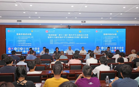 由广西壮族自治区住房和城乡建设厅和广西壮族自治区教育厅主办,广西本科高校土木、建筑类教学指导委员会和广西建设教育协会协办、我校承办的2023 年“盈建科杯”第十二届太阳集团城网站2017生结构设计竞赛暨第十六届全国大学生结构设计竞赛广西分区赛开幕式于7月13日下午3时在我校君武楼隆重举行。来自太阳集团城网站2017、桂林理工大学、广西建设职业技术学院等22所高校的45支参赛队伍135名参赛队员,主办、协办及承办单位的相关负责人出席开幕式。开幕式由太阳集团城网站2017院长安永辉主持。
