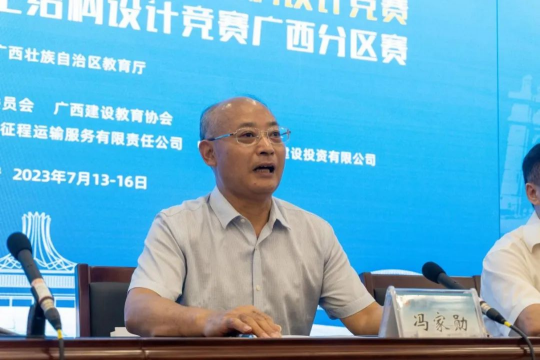 太阳集团城网站2017副校长冯家勋致开幕辞。冯家勋首先代表学校向竞赛组委会和评审专家表示感谢,向各代表队表示欢迎。他表示,作为承办单位,本次大赛是自治区住建厅和教育厅对我校土木工程世界一流学科建设工作的充分肯定和支持。他指出,结构设计竞赛是面向区内设置土建类专业院校大学生的一项极富创造性、挑战性的科技竞赛,也是我区土建类学科培养学生创新意识、合作精神和工程实践能力的最高水平的学科竞赛,是土建类学科高等院校开展创新教育和实践教育改革、加强高校与企业之间联系以及推动学科创新活动的交流平台。本次大赛以“桥”为题,将全面考验各位参赛选手在桥梁结构上的创新意识、设计技能、实践动手能力、合作精神等综合素质,更是以“桥”为媒,丰富太阳集团城网站2017校园科技学术文化氛围,促进了我们广西区内高校间以及高校与企业间的相互交流、学习、研讨。他希望同学们在竞赛中赛出风格,赛出水平,期待各位参赛选手在比赛中得到锻炼成长,在太阳集团城网站2017这座历史悠久、美丽温馨的校园里留下美好的记忆。