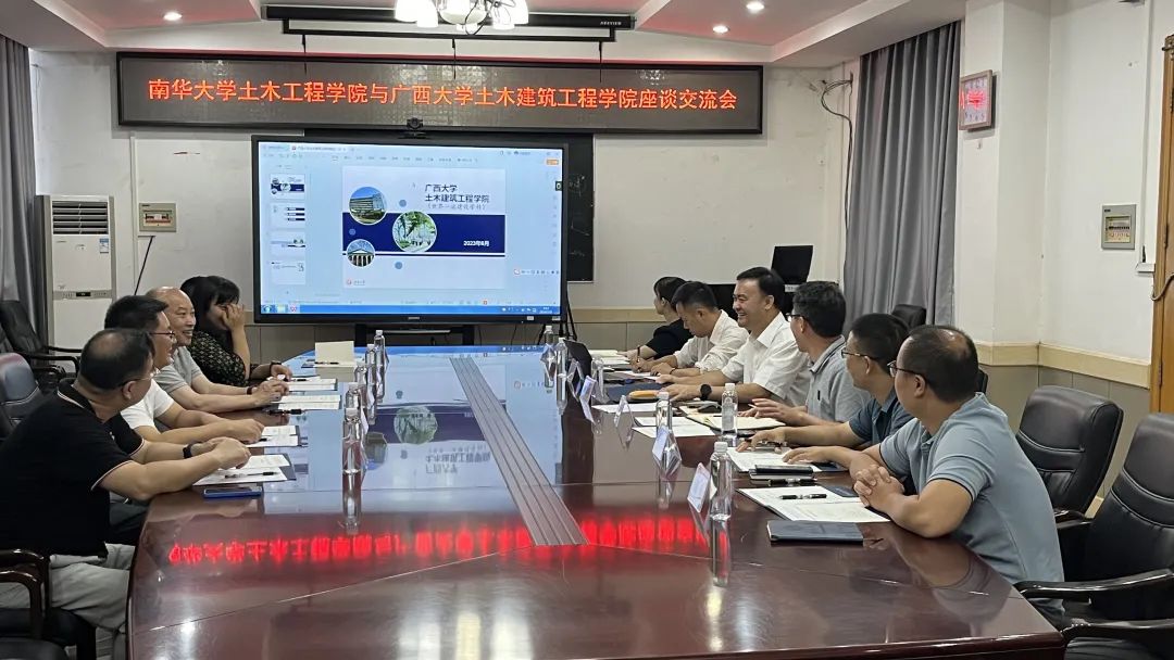 双方与会人员紧紧围绕工程教育专业认证中期督查、学生实践创新能力培养等内容进行深入交流,并就如何加强双方的合作进一步探讨。期间,南华大学土木工程学院一行参观了土木工程大型结构试验研究平台和学院资料室。