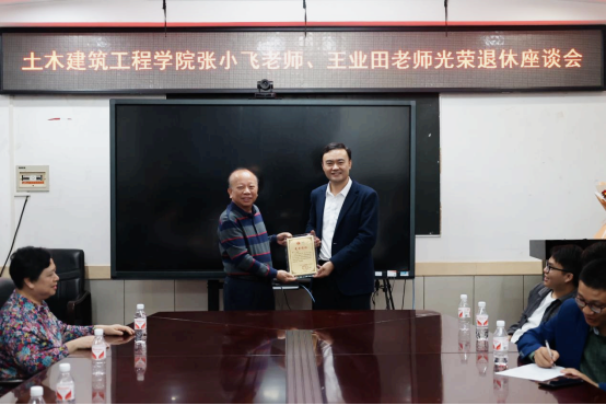 学院为张小飞老师、王业田老师举办光荣退休座谈会