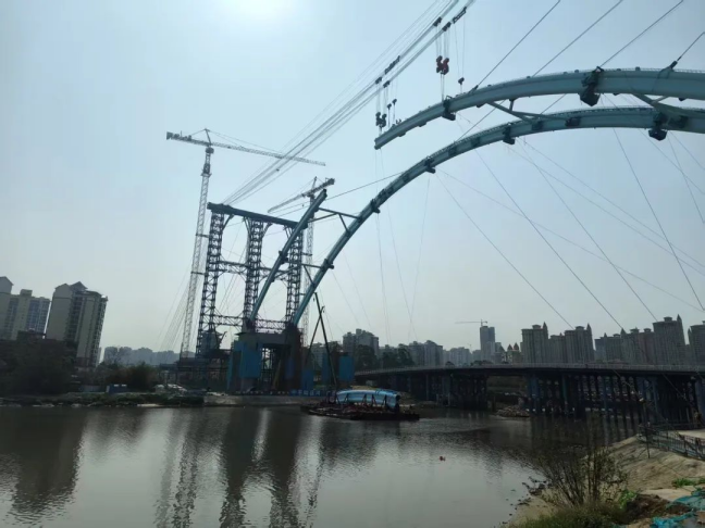金海湾大桥左幅拱肋合龙口毫米级精准对接