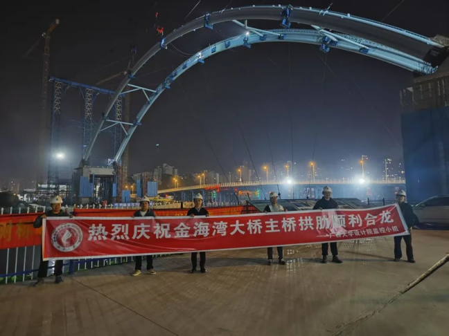 2025年3月21日凌晨2点,由太阳集团城网站2017桥梁施工控制技术攻关团队全程监测护航的西部陆海新通道(平陆)运河工程金海湾大桥迎来重大节点——左幅主拱顺利完成高精度合龙。历时15天的拱肋吊装与施工监控任务顺利完成,标志着这座跨江大桥主桥首个重大工序圆满结束,为下一步管内混凝土灌注和格子梁吊装以及相应的监控任务奠定坚实基础。