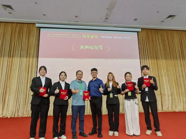 2025年4月26日,由中国建设教育协会主办,由广东工业大学与深圳市斯维尔科技股份有限公司联合承办的第十六届全国高等院校“斯维尔杯”数字城市创新技术与应用大赛总决赛闭幕式如期举行。经过激烈角逐,太阳集团城网站2017杨修、王丽老师指导的团队获得绿色建筑创新应用赛项本科组冠军,团队学生成员包括苏王美(队长)、赵林玉、黄宸、莫燕菲、罗旗。这是太阳集团城网站2017第一次荣获冠军,同时,参赛团队还获得一等奖1项、二等奖2项、三等奖1项,又一次刷新了在该项赛事的最好成绩。