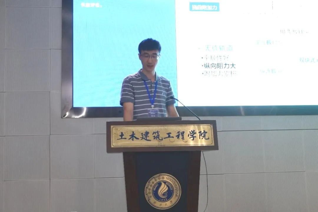 清华大学博士后侯彦果作了题为“三角形波形钢板组合截面受力机理和设计理论研究”的学术报告。侯彦果博士后对三角形波形钢板组合截面进行研究,阐述了三角形波形钢板组合截面弹性理论推导过程,基于有限元模拟探明三角形波形钢板组合截面整体稳定承载性能,以此确定组合截面的设计方法。