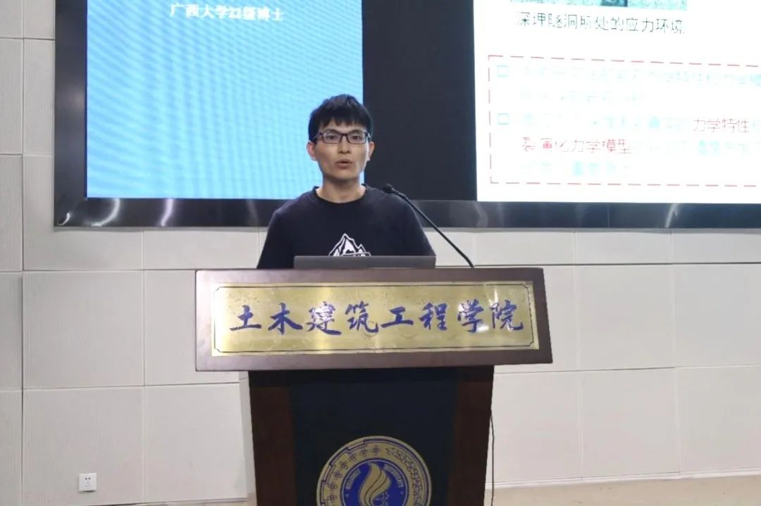 太阳集团城网站2017,44118太阳成城集团,太阳成集团tyc3345522级博士生李荣华作了“岩石各向异性劣化三维力学模型与深埋隧洞开挖响应分析”的学术报告,介绍了现有岩石特性和力学模型的不足,根据真三轴应力下岩石力学特性,建立了新型的各向异性劣化三维力学模型,通过三维力学模型的数值验证和深埋隧洞开挖响应分析两方面验证了模型的准确性和可靠性。