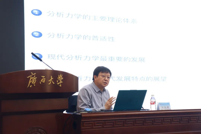 报告中,郭永新教授首先介绍了分析力学的主要理论体系,回顾了该学科发展历程中的里程碑事件以及分析力学形成的主要理论体系,并重点讲解了Lagrange理论体系和Hamilton理论体系等核心内容。随后,郭永新教授阐述了分析力学的普适性和最新进展。