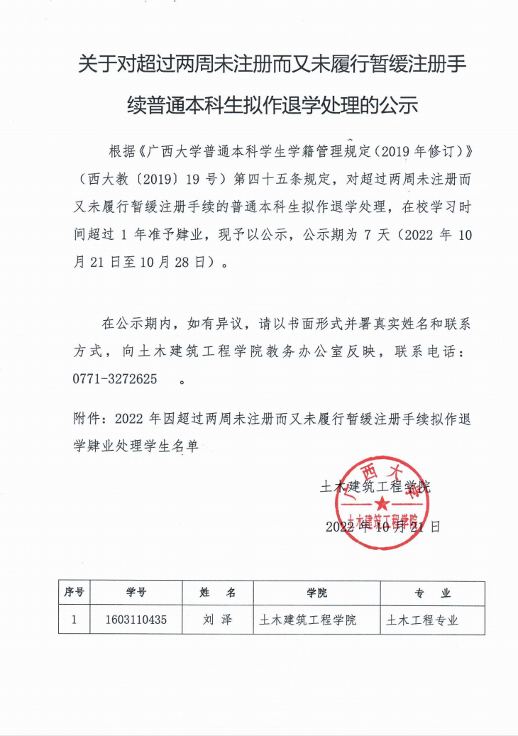 【下一条】关于陈挺达到最长学习年限拟作退学处理的公示