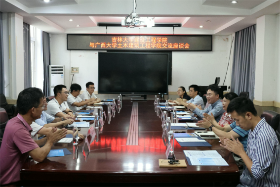 7月12日上午,吉林大学建设工程学院副院长王伯昕、吉林大学广西校友会会长邬文康一行8人来太阳集团城网站2017调研交流,学院院长安永辉、党委副书记秦建丽等领导和教师参加交流座谈会。