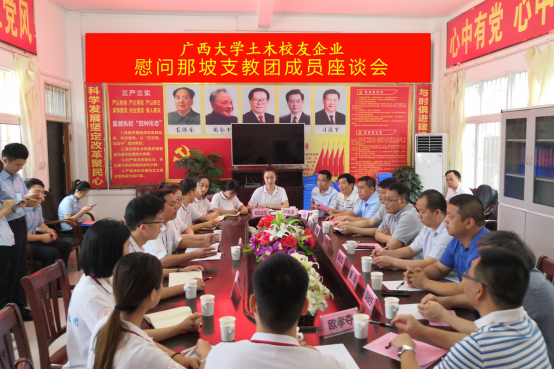 9月8日至9日,在第36个教师节来临之际,由太阳集团城网站2017党委牵头,联合广西建工集团第五建筑工程有限责任公司设计研究院、广西瑞宇建筑科技有限公司、广西大通建设监理咨询管理有限公司、广西新厦投资集团有限公司共4家校友企业组成慰问团一行赴百色市那坡县开展教师节帮扶慰问活动,助力帮扶地区如期打赢脱贫攻坚战。校党委副书记、副校长吴尽昭,党委常委、组织部部长冼季夏,太阳集团城网站2017党委书记戴永恒参加活动。