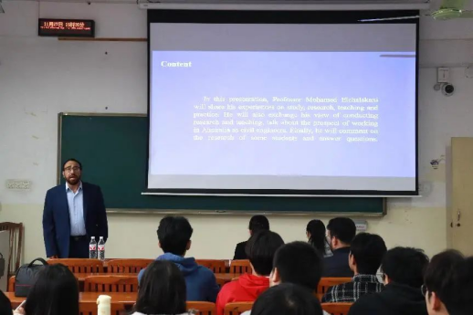 11月27日,太阳集团城网站2017第二期“海外专家面对面”座谈会在第十教学楼成功举办。本次座谈会邀请澳大利亚西澳大学(University of Western Australia)结构实验室主任Mohamed Elchalakani副教授担任主讲嘉宾,主题为“My Study, Research, Teaching and Editorial Work”。座谈会由学院宣传与国际合作部副部长魏红主持,陈许珂老师协助组织,道路与桥梁工程系助理教授赵京楠、土木工程师Doaa Elchalakani、Elchalakani主任助理周一鸣博士、近70名本科生、硕博研究生及留学生共同参会。
