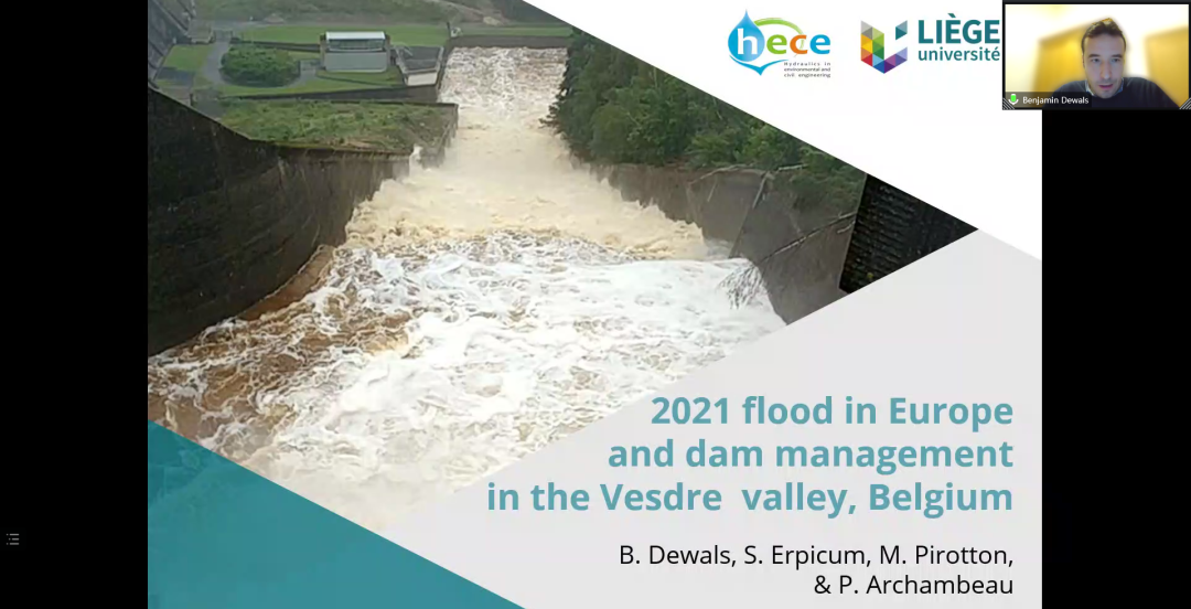 比利时列日大学Benjamin Dewals教授首先分析了2021年7月在默兹流域发生的历史性大洪水的特性以及相应的洪水风险;以比利时默兹河流域为例,分析其中两个多功能水库的调度规则,深入评估不同气候变化情景对水库调度规则的影响,提出水库调度规则改进的方法,以提高流域洪水管理水平。