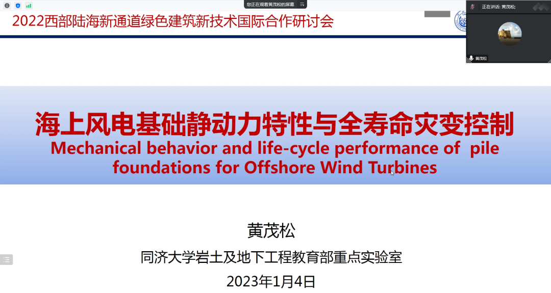国家杰出青年科学基金获得者、百千万人才工程国家级人选,同济大学特聘教授黄茂松介绍了海上风电基础类型和发展现状,对黏质海床中大直径单桩的水平静力承载特性和循环加载特性,以及桩基础海上风机振动控制与风浪耦合动力特性进行分析,对我国未来风电结构体系发展进行展望。