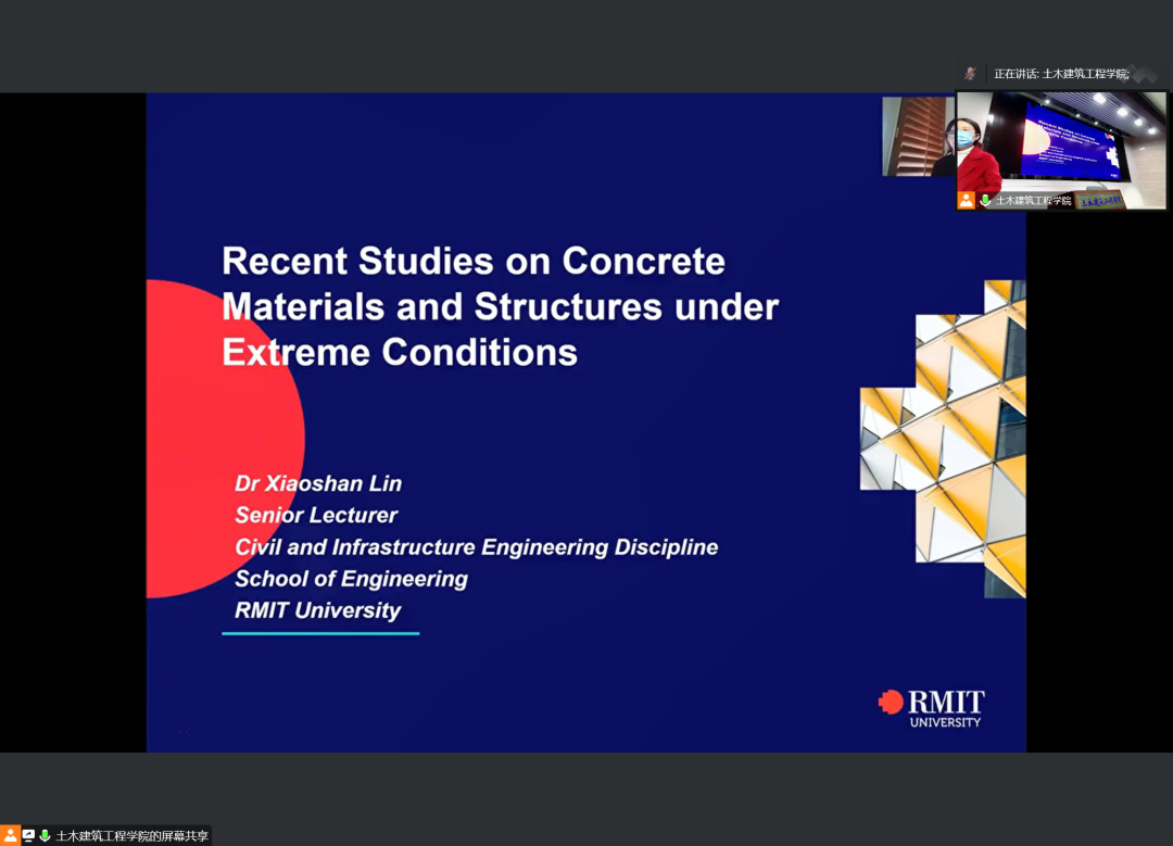 墨尔本皇家理工大学Xiaoshan Lin博士介绍了纤维增强混凝土(FRC)在冲击和高温下的最新性能研究成果,包括试验研究和数值模型开发。此外,还介绍了用于增强冲击性能的混凝土构件创新设计。